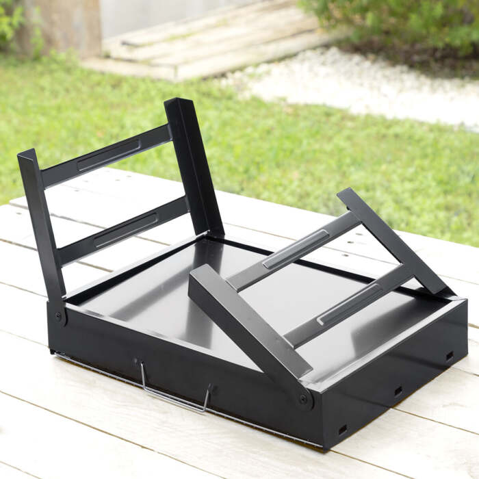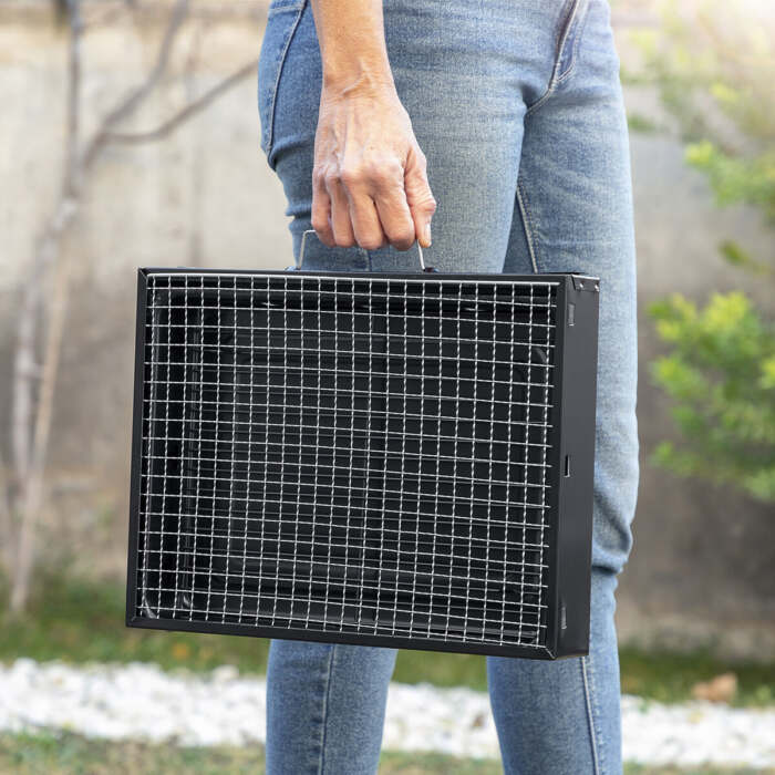 Un barbecue a carbone da tavolo molto pratico e maneggevole che può essere facilmente trasportato ovunque grazie al suo design moderno, pieghevole e portatile. Ha dei fori di ventilazione e una maniglia di trasporto per poterlo trasportare facilmente. La griglia alimentare rimovibile permette di aggiungere facilmente il carbone in qualsiasi momento. Inoltre, include una griglia inferiore di protezione che si colloca all’interno, alla base del barbecue, per mettere sopra la carbonella (1,5 kg max.). Questo barbecue in ferro è robusto, poco ingombrante e facile da montare e smontare, semplicemente aprendo le gambe e mettendole a terra o su un tavolo (su una superficie piana, stabile e resistente al calore). Ideale per godersi un delizioso barbecue in compagnia (2 persone) e molto facile da usare e pulire. Per accendere il barbecue, è necessario utilizzare pastiglie per l’accensione, gel d’accensione o altri accendifuoco adatti al barbecue (non inclusi), anche se per una migliore conservazione del barbecue per un tempo più lungo, si consiglia di accendere le braci utilizzando un accendino per carbonella (non incluso). È importante notare che non è adatto per la legna o altri combustibili. Il carbone non è incluso.