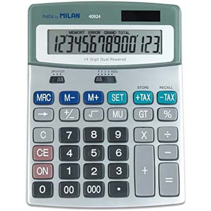 Torna in ufficio senza dimenticarti di nulla! Compra Calcolatrice Milan Bianco Argentato Metallo 18,5 x 14 x 2 cm e sarai l’invidia dei tuoi colleghi!