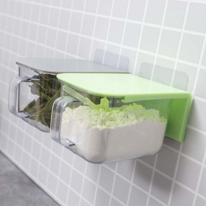 Un set di 2 contenitori da cucina adesivi estraibili che sono molto versatili e adattabili grazie al loro originale design portatile multiposizione. La capacità di ogni contenitore è di 420 ml. Hanno coperchi con guide e maniglie a presa centrale per una estrazione facile e comoda. Questi moderni e pratici contenitori multiuso sono ideali per conservare un’ampia varietà di condimenti e altri alimenti, come sale, pepe, origano, aglio in polvere, zucchero, caffè, farina, ecc. Il set comprende anche 2 cucchiaini, 2 adesivi verticali a un lato e 2 adesivi orizzontali a due lati. Si installano facilmente senza montaggio o attrezzi grazie agli adesivi di qualità inclusi (Nano PU Gel), che sono molto forti e forniscono una presa sicura. Inoltre, questi adesivi sono facili da rimuovere senza lasciare residui sulle superfici e possono essere riposizionati. Gli adesivi possono essere collocati sul muro o sotto un armadio o una mensola in cucina, a seconda delle varie preferenze. Possono anche essere semplicemente lasciati sul tavolo o sul piano di lavoro della cucina. Possono anche essere installati sotto un tavolo o un’altra superficie come piccoli cassetti nascosti e utilizzati per conservare viti, dadi o altri piccoli oggetti, ma questo non è il loro uso principale. Sono facili da pulire, leggeri e compatti, permettendo un maggiore ordine e risparmio di spazio.