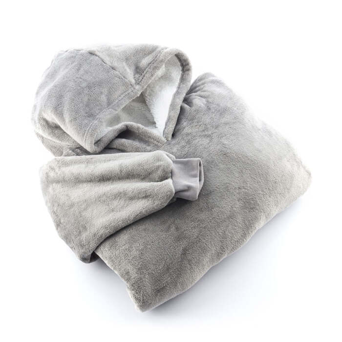 per rimanere al caldo tutto il giorno. Un concetto innovativo che combina una coperta e una felpa con