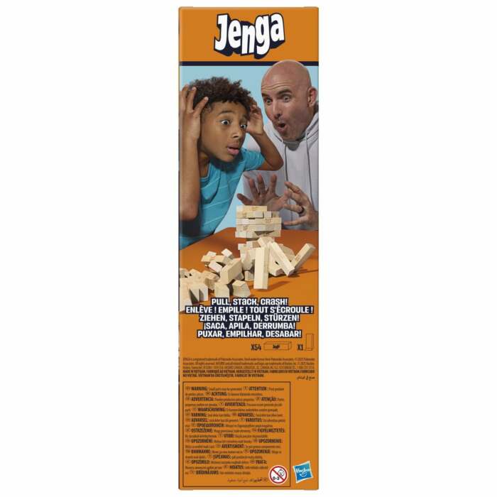 Il gioco da tavolo Jenga di Hasbro è un gioco classico e divertente, ideale per riunioni e feste, pensato per un pubblico a partire da 6 anni. Questo gioco è composto da blocchi in legno, un materiale resistente che conferisce texture e durata a ogni pezzo, garantendo un’esperienza tattile autentica e solida. Con una modalità per 2 giocatori, favorisce la competizione sana e la concentrazione, sfidando abilità manuali e strategia dei partecipanti. La versione è disponibile in lingua francese, aggiungendo un tocco culturale e distintivo, adatta a utenti francofoni o a chi desidera praticare la lingua. Include inoltre dadi digitali che introducono un elemento innovativo al gioco tradizionale, con meccaniche moderne che ampliano le possibilità di divertimento e dinamiche in ogni partita. Sebbene richieda batterie per il funzionamento dei dadi digitali, il cuore del gioco resta il classico equilibrio e la destrezza con i blocchi di legno. Prodotto in Cina secondo gli standard di qualità Hasbro, questo gioco rappresenta un’opzione solida per chi cerca un intrattenimento classico con un tocco tecnologico e multiculturale. È una proposta bilanciata che combina materiali di qualità, accessibilità per bambini e un design studiato per mantenere attenzione e divertimento tra giocatori di tutte le età. Questo gioco da tavolo unisce tradizione e innovazione, integrandosi facilmente in qualsiasi ambiente familiare o sociale.
