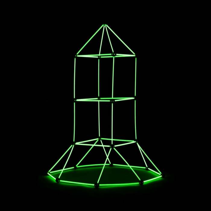 Questo kit di costruzione di fortini per bambini da 85 pezzi consente ai bambini di sviluppare la loro immaginazione e di assemblare un’infinità di strutture che brillano al buio. Include una copertura in tessuto e una borsa per il trasporto. Adatto a bambini di 3 anni o più.