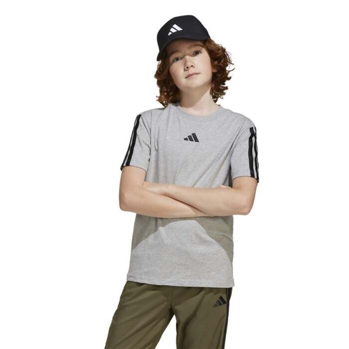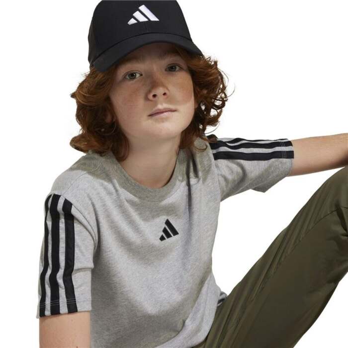 Maglia a Maniche Corte per Bambini Adidas 3stripes Nero Grigio chiaro