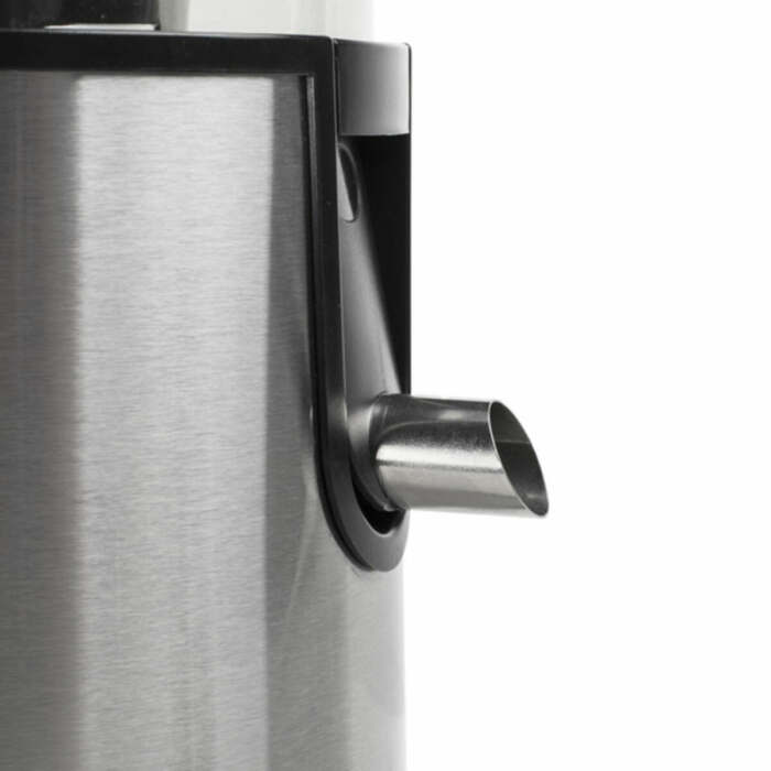 Robusto spremiagrumi in acciaio con filtro e lame in acciaio inossidabile. E’dotato di 2 impostazioni di velocità, funzione antigoccia, interruttore di sicurezza, contenitore polpa e contenitore succo (0,5L).
