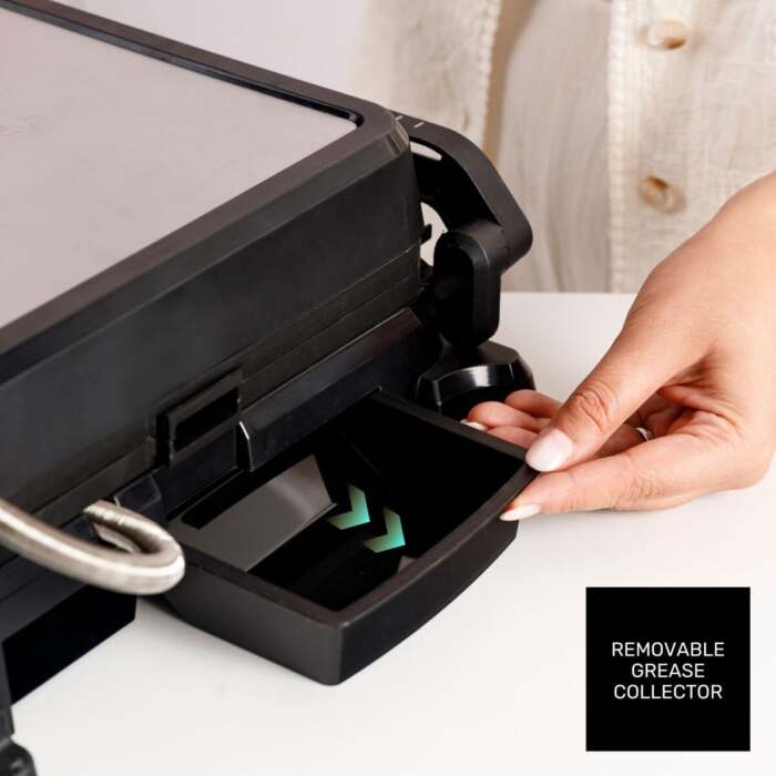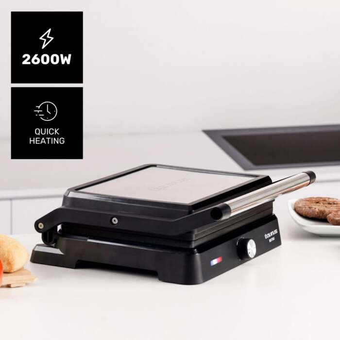 Il grill a contatto Taurus è una piastra da cucina progettata per offrire una superficie di cottura ampia e versatile, con dimensioni di 290 x 230 mm che permettono di preparare una vasta gamma di alimenti in modo efficiente. Il suo formato compatto e funzionale lo rende ideale per uso domestico o spazi ridotti, facilitando la cottura di carni, verdure e panini con un contatto diretto che garantisce un riscaldamento uniforme e risultati rapidi. La piastra assicura una distribuzione omogenea del calore, favorendo una cottura precisa e controllata, oltre a facilitare la pulizia grazie alla sua superficie liscia. Questo modello unisce semplicità e praticità, adattandosi a diversi stili culinari offrendo un metodo di cottura salutare che richiede poco o nessun grasso aggiuntivo. Il grill a contatto Taurus rappresenta una soluzione pratica per chi cerca di ottimizzare spazio e tempo in cucina senza rinunciare a una preparazione efficiente e con finitura professionale.
