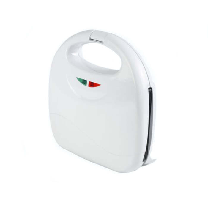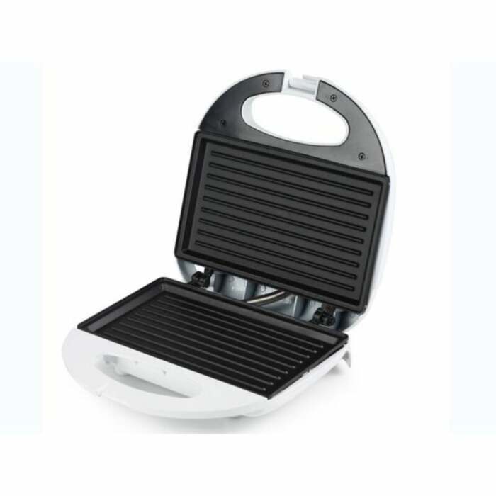 Tostiera con piastre per fare deliziosi panini. Le piastre hanno un rivestimento antiaderente in modo che siano facili da pulire. Il prodotto è dotato di 2 spie di funzionamento e di un coperchio con chiusura di sicurezza.