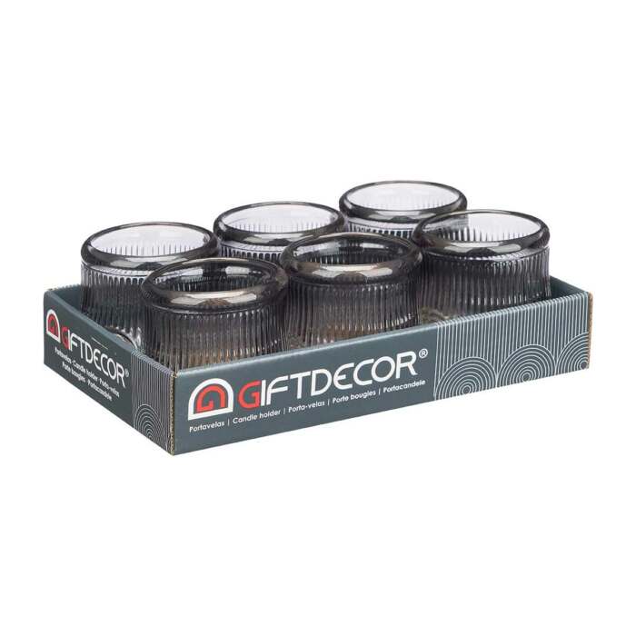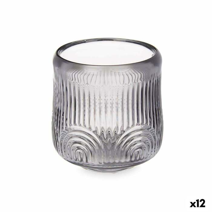 Portacandele Gift Decor Grigio Cristallo 9 x 9,5 x 9 cm Righe (12 Unità)