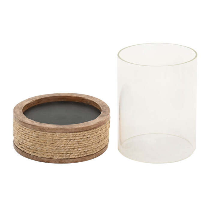 Portacandele Home ESPRIT Marrone Naturale Cristallo Corda Legno di mango