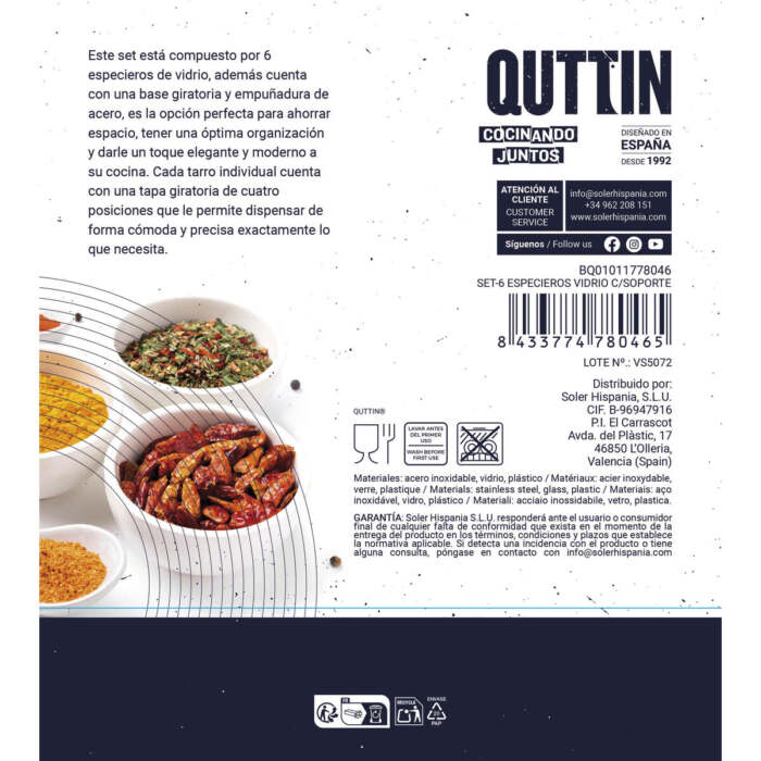 Se ti piace curare ogni singolo dettaglio della casa ed essere sempre alla moda in tema di prodotti che ti renderanno la vità più facile, compra Portaspezie Quttin 17,8 X 17,8 X 16,3 CM (6 Pezzi) (8 Unità) al miglior prezzo.