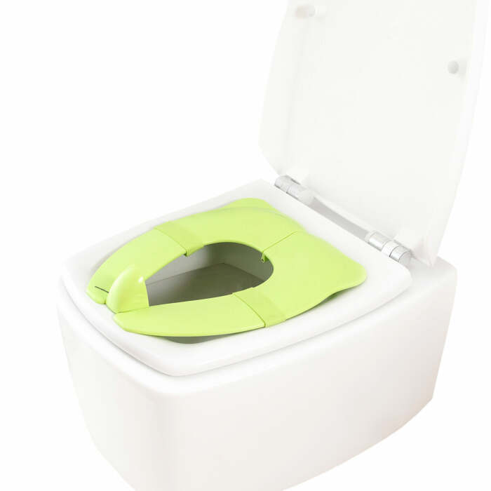 Un adattatore per WC portatile per bambini che si piega facilmente per occupare meno spazio e poterlo portare in borsa o nello zaino ovunque. Si pulisce con acqua e sapone.