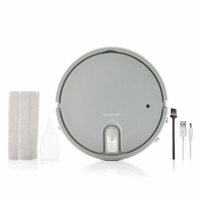 Si tratta di un robot aspirapolvere ricaricabile ideale per ottenere una pulizia profonda e completa grazie alle sue 5 funzioni: aspira, spazza, lava, umidifica e disinfetta. Pulsante touch on/off, 2 mop lavabili, flacone dosatore, mini spazzola per la pulizia e cavo USB.