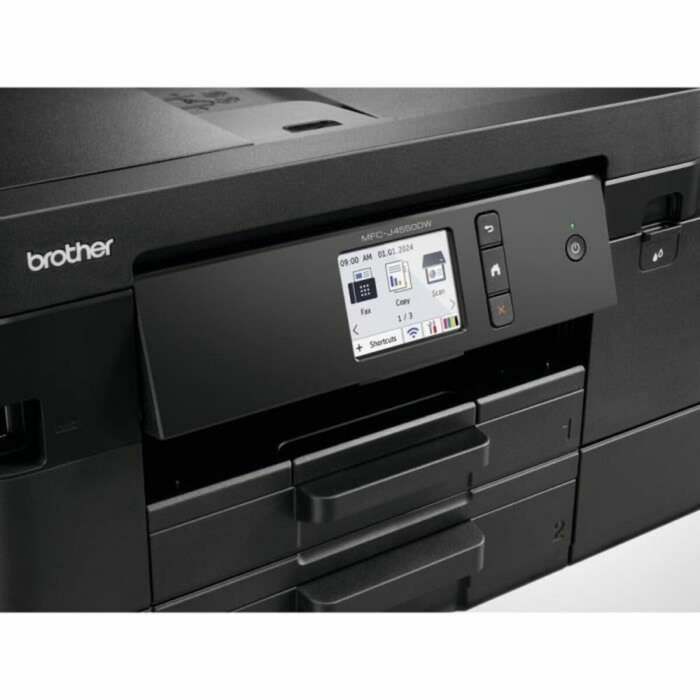 La stampante multifunzione Brother MFCJ4550DWRE1 offre un ambiente professionale completo ed efficiente grazie alla sua avanzata tecnologia a getto d’inchiostro a colori, ideale sia per uffici che per la casa che richiedono versatilità e alta qualità in stampa, copia, scansione e fax. La sua velocità di stampa raggiunge fino a 20 pagine al minuto in monocromatico e 19 a colori, con funzione duplex automatica per risparmio carta, modalità silenziose e tempi di prima stampa ridotti (5,8 secondi in nero, 5,9 a colori) che ottimizzano il flusso di lavoro quotidiano. Dotata di un display touchscreen LCD a colori da 6,8 cm, questa stampante consente una navigazione semplice e intuitiva di tutte le funzioni. La gestione della carta è particolarmente flessibile: include alimentatore automatico di documenti da 20 fogli, cassetto standard da 150 fogli, cassetto inferiore da 250 fogli e slot manuale per formati speciali, supportando dimensioni da A4 a 10×15 cm e diversi spessori e tipi di carta, adatta a documenti professionali, foto o buste. La funzione di scansione si basa su sensore CIS, offrendo risoluzione interpolata fino a 19200 x 19200 dpi e velocità efficiente (fino a 17 pagine al minuto in bianco e nero e 7 a colori, formato A4), ideale per digitalizzazioni di alta qualità. La connettività è un altro punto di forza: combina WiFi dual band (2,4 e 5 GHz), Ethernet e USB 2.0, permettendo integrazione sia in reti cablate che wireless, oltre a stampa mobile tramite Brother Mobile Connect, AirPrint, Mopria e altri servizi compatibili. Dispone inoltre di opzioni avanzate di sicurezza di rete come SSL/TLS, IPsec e autenticazione 802.1x, per proteggere documenti stampati e digitalizzati. Il fax integrato consente invio e ricezione diretta da PC e offre funzioni aggiuntive come riduzione automatica e trasmissione in memoria per una gestione documentale efficiente. Compatibile con cartucce ad alta capacità —nero fino a 3000 pagine, colori fino a 2000 pagine—, garantisce manutenzione economica e duratura. Il design robusto in plastica nera, con dimensioni compatte (440 x 418 x 250 mm) e peso di 10,4 kg, facilita il posizionamento in diversi ambienti di lavoro. Con memoria da 256 MB e display a colori, la Brother MFCJ4550DWRE1 è una soluzione moderna e completa per chi cerca affidabilità, connettività e risultati professionali in una stampante multifunzione.