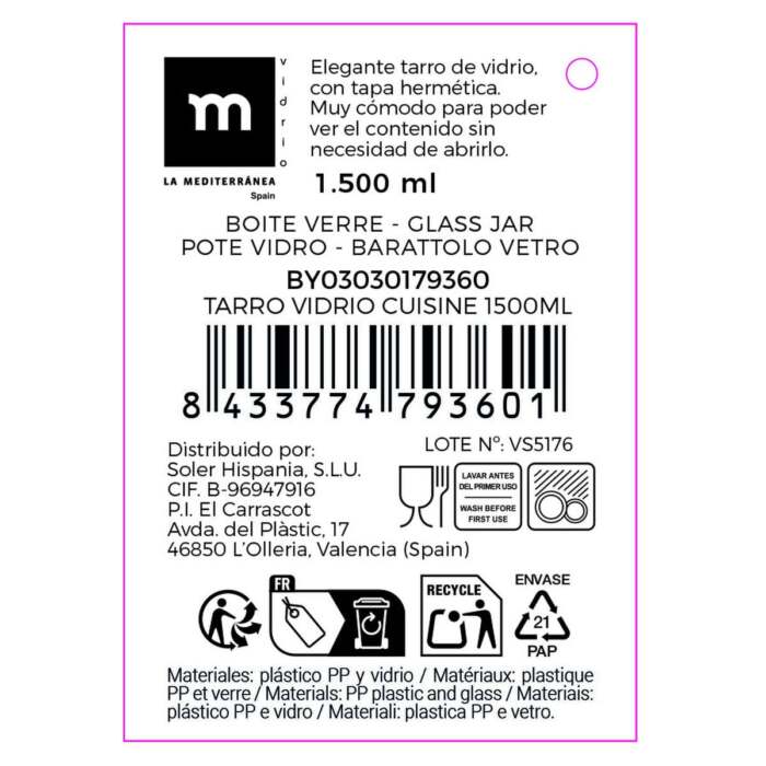 Se sei alla ricerca di novità alla moda sul mercato, ti presentiamo Vaso La Mediterránea CUISINE Trasparente 1,5 L (8 Unità)!