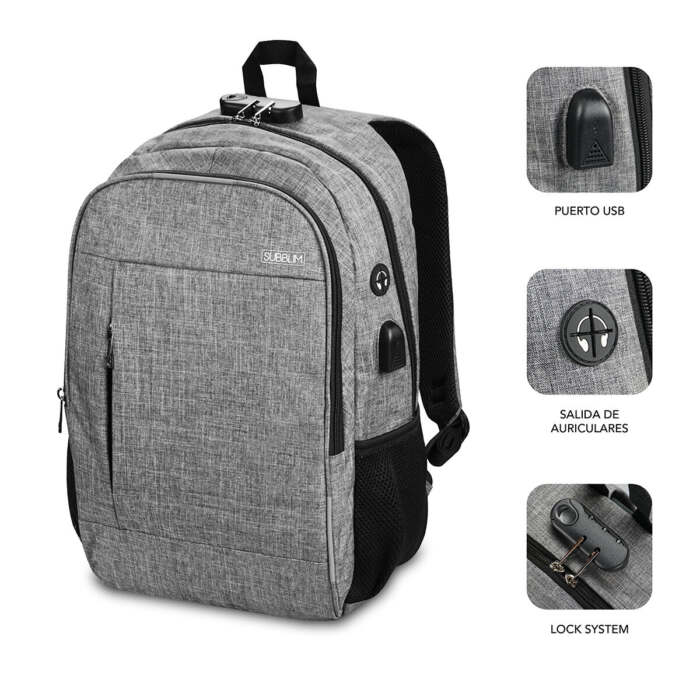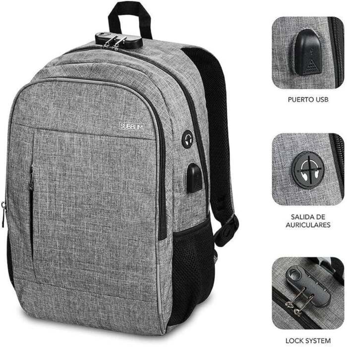 Zaino per PC Portatile e Tablet con Uscita USB Subblim SUB-BP-1UL0001 Grigio