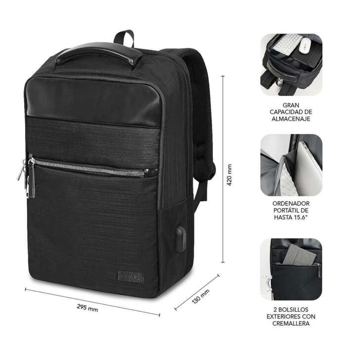 Lo zaino per laptop SUBBP-2BL1015 di Subblim è una soluzione versatile e sicura per i professionisti che cercano protezione e funzionalità nei loro spostamenti quotidiani. Progettato per ospitare laptop fino a 16 pollici (compatibile anche con modelli da 15,6″), questo zaino nero unisce uno stile sobrio e professionale a dettagli studiati per l’uso di tutti i giorni. Tra le sue caratteristiche principali spicca l’esclusivo sistema Air Padding, che utilizza bolle di schiuma imbottite antiurto per offrire una protezione superiore contro colpi e cadute accidentali, garantendo così la sicurezza dei dispositivi elettronici. La struttura include numerosi scomparti e tasche pensati per organizzare accessori, documenti e oggetti personali, ottimizzando lo spazio e facilitando l’accesso in ogni momento. Per il massimo comfort durante il trasporto, dispone di una maniglia resistente e di spallacci ergonomici e imbottiti, ideali sia per gli spostamenti urbani che per i viaggi di lavoro. Un’altra funzione importante è il porta USB esterno, che consente il collegamento a una power bank per ricaricare facilmente dispositivi elettronici in movimento (batteria esterna non inclusa), una soluzione pratica per chi dipende da smartphone, tablet o ebook durante la giornata. Realizzato con materiali resistenti e idrorepellenti, questo zaino offre durata e protezione aggiuntiva contro condizioni avverse. Le sue dimensioni sono ideali per il trasporto di computer e la larghezza di 30 cm con profondità di 13 cm facilita lo stoccaggio senza rinunciare alla comodità. Nel complesso, il SUBBP-2BL1015 si distingue come uno zaino per laptop robusto, pratico e di alta qualità, pensato per le esigenze dell’utente urbano e del professionista moderno.